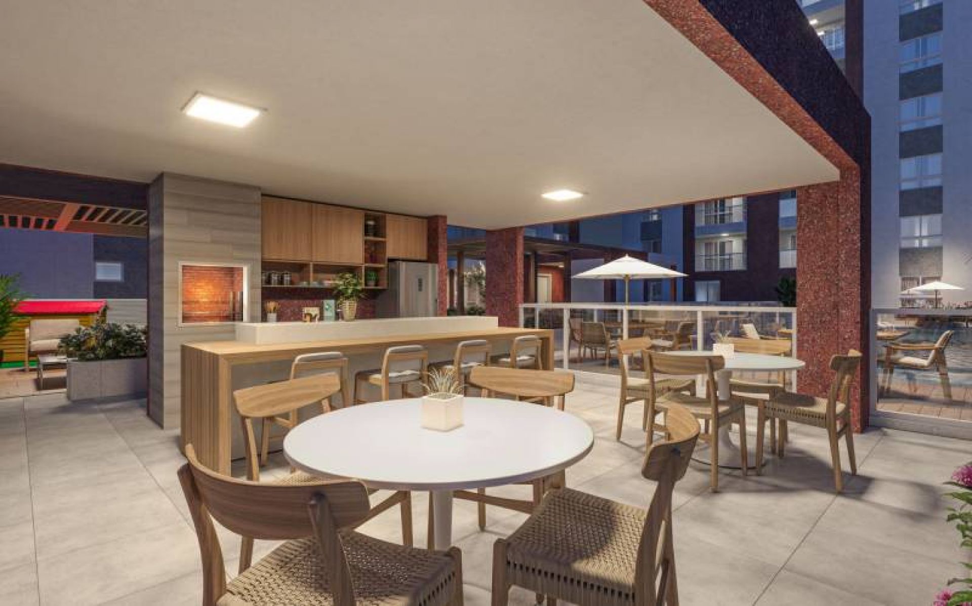- Varanda gourmet com pia e ponto elétrico em todos os apartamentos Diferenciais.